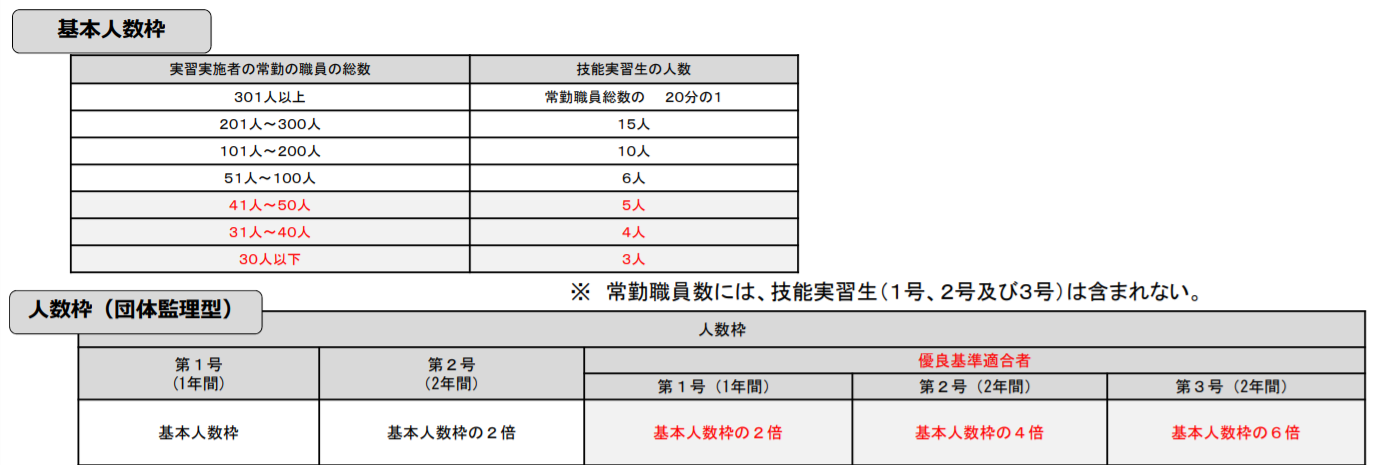 技能実習生の受入れ人数には、上限があります。
